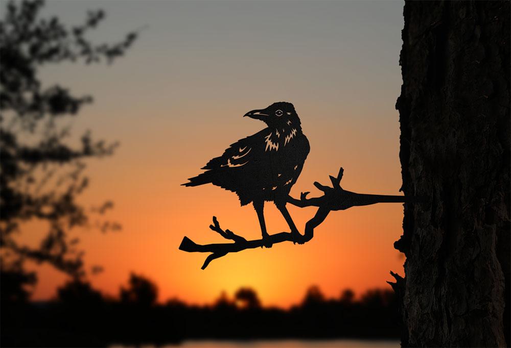 The Crow metal tree art silhouette is a beautiful, well-made addition to your backyard. Shop this outdoor garden decor sculpture bird silhouette. Limited stock, all our metal tree art silhouettes sell out quickly.