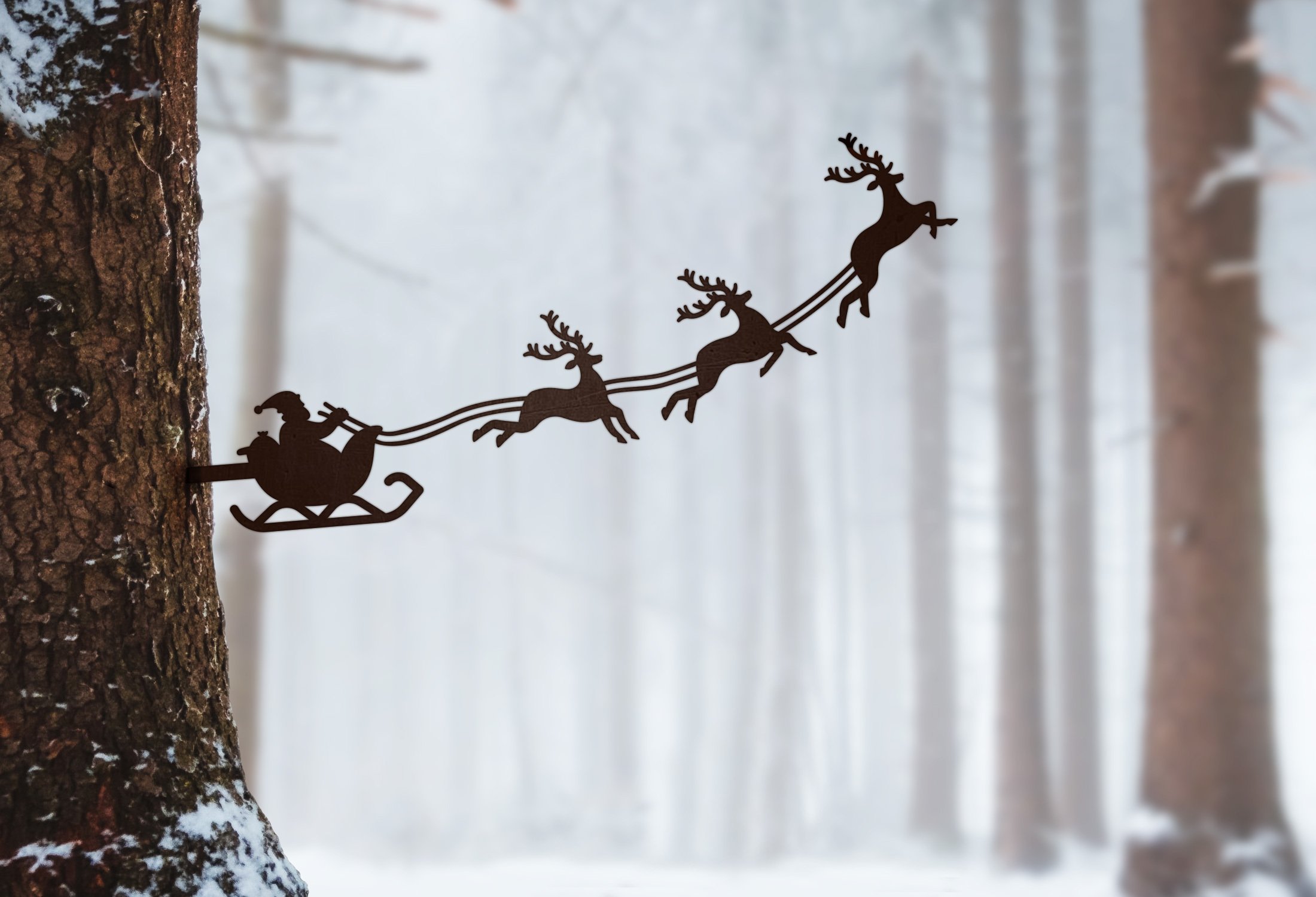 Santa's Sleigh art tree silhouette is a beautiful, well-made addition to your backyard. Shop this outdoor garden decor sculpture silhouette. Limited stock.